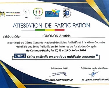 PARTICIPATION DU PRÉSIDENT DE L’ONG ALIVI BÉNIN AU CONGRÈS NATIONAL DES SOINS PALLIATIFS